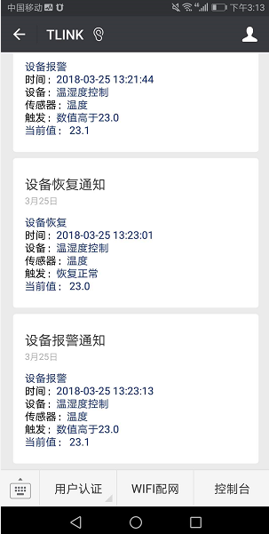 TLINK云平臺接收各現(xiàn)場傳回的監(jiān)測數(shù)據(jù),并在平臺界面上可隨時查看各儲油罐的液位、溫度信息,而且一旦某個儲油罐的液位、溫度數(shù)據(jù)超過上限或下限,系統(tǒng)會微信、短信推送報警。