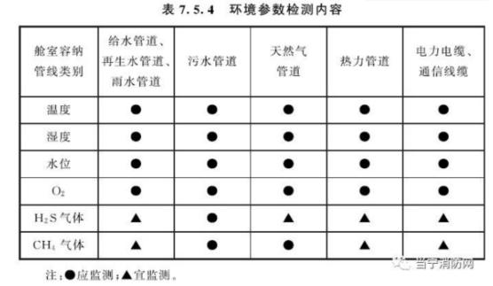 所以國家對(duì)城市管廊監(jiān)測(cè)系統(tǒng)有明確的要求,其中對(duì)各艙室的環(huán)境參數(shù)檢測(cè)內(nèi)容為: